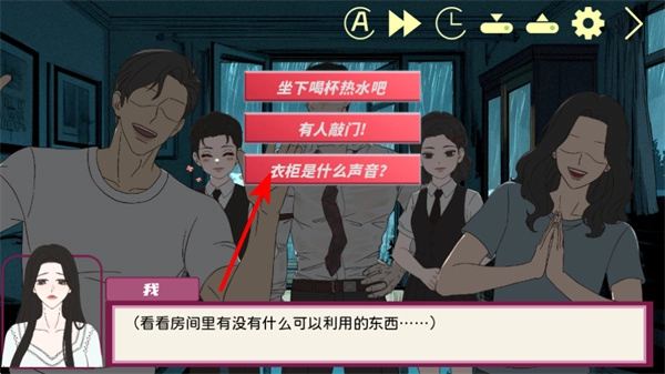 在多角色场景里,点击衣柜对应的声音选项,就能触发对衣柜的调查互动,进而解锁相关的剧情线索。