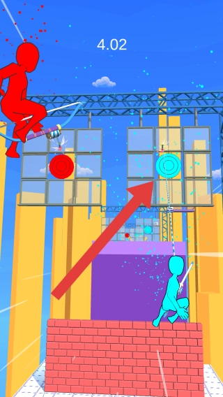 屏幕上会显示倒计时,我们是蓝色方阵营,得依据靶子所在的位置来瞄准射击,要是稍微不注意,就很容易从平台上掉下去。