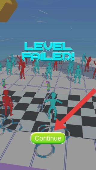 画面呈现两位玩家都抵达终点,其余玩家为之喝彩的场景,点击Continue按钮即可进入下一关继续游戏。