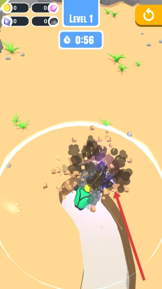 点击屏幕控制角色沿环形路线出发,开启挖掘冒险之旅,借助工具探索地下隐藏的矿脉资源,在59秒的限时内展开行动。