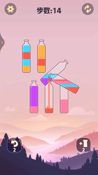 玩家只需要将许多个装着不同颜色的瓶子进行多次排序,最后将相同颜色的液体全部放入同一个瓶子中就可以顺利过关。