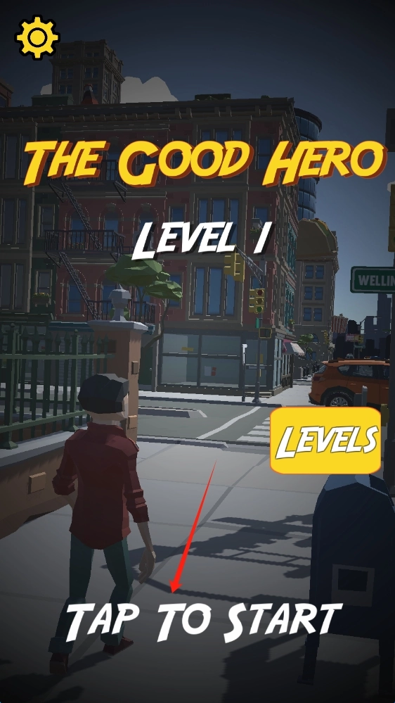 在THE-GOOD-HERO界面,点击Tap-to-Start,开启第1关的正义冒险,点击开始游戏。
