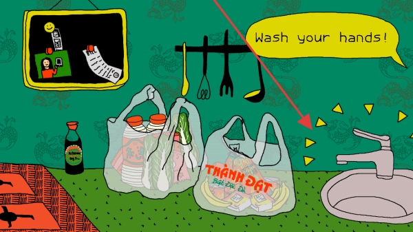 游戏场景会给出“Wash your hands!”的提示,你需要依据这个提示去执行洗手的操作,以此来完成游戏里的卫生任务。