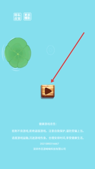 点击开始按钮进入蝌蚪生存游戏,你需要操控蝌蚪群,看着它们在荷叶上孵化后,在水域里一边躲避大鱼的追击,一边收集黄点。