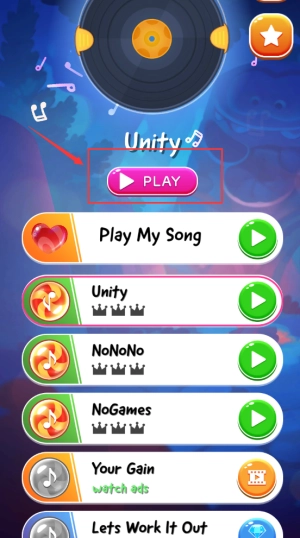 点击红色的“PLAY”按钮,即可开启音乐节奏游戏的挑战之旅。