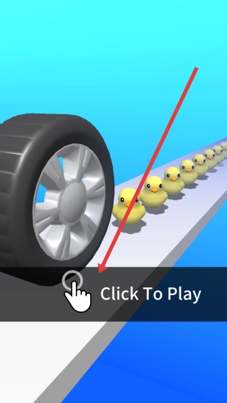 点击界面下方的Click-To-Play区域,就能让轮胎在小鸭排列的道路上开始滚动,从而启动游戏关卡。