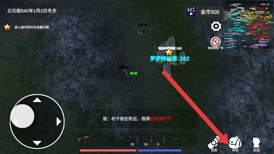 要是在行进途中碰到敌人引发了战斗,可以挑选攻击、防御之类的指令;战斗结束之后,打开背包的界面,查看并且拾取战斗掉落下来的道具。