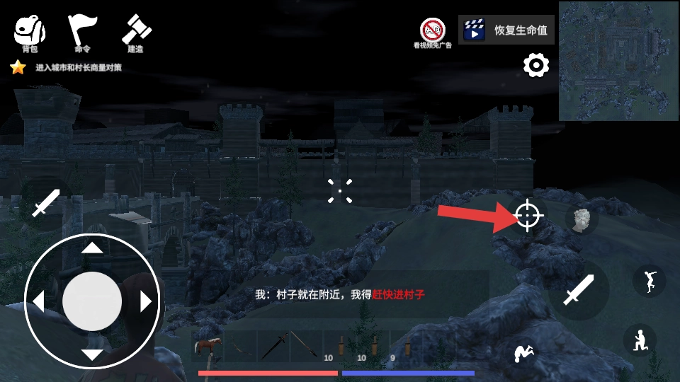 当接到需要进入城市与村长商议应对策略的任务提示后,操控骑马的角色前往城市入口,在靠近城门的位置会自动触发进入城市的动画。