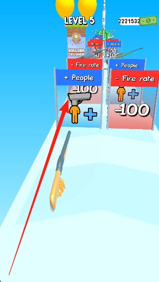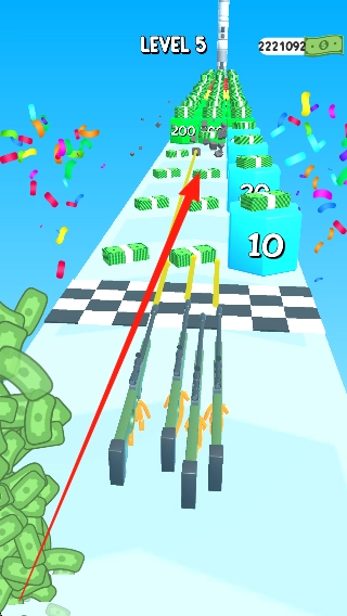冲过赛道的终点线,根据消灭敌人的数量赢取丰厚奖励,用这些奖励提升自身实力,尽情享受闯关成功带来的喜悦。