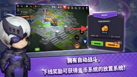 开启自动战斗功能,派遣骑士前往地图征战,即使离线也能获得金币奖励,通过积累资源来强化养成。