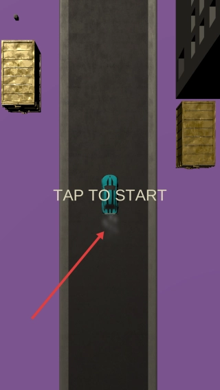 点击【TAP TO START】按钮,操控蓝色小车,沿着紫色背景的赛道行驶。