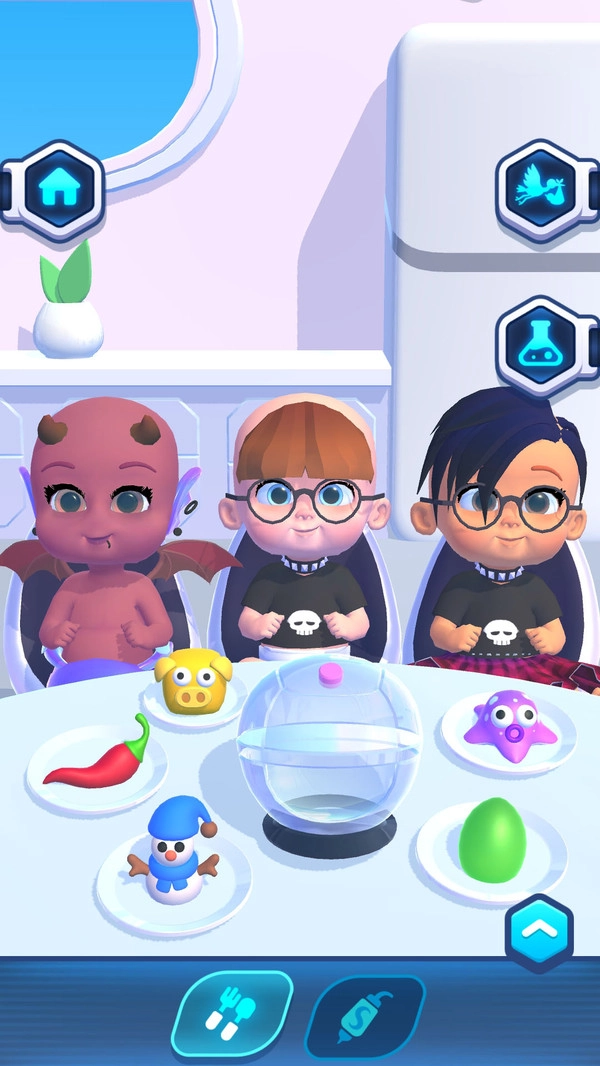 核心玩法围绕魔法锅展开,玩家需将不同组件放入锅中,融合出不同姿态的宝宝,每次融合都有随机惊喜。