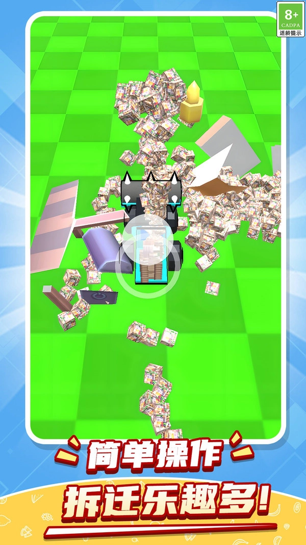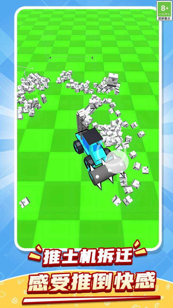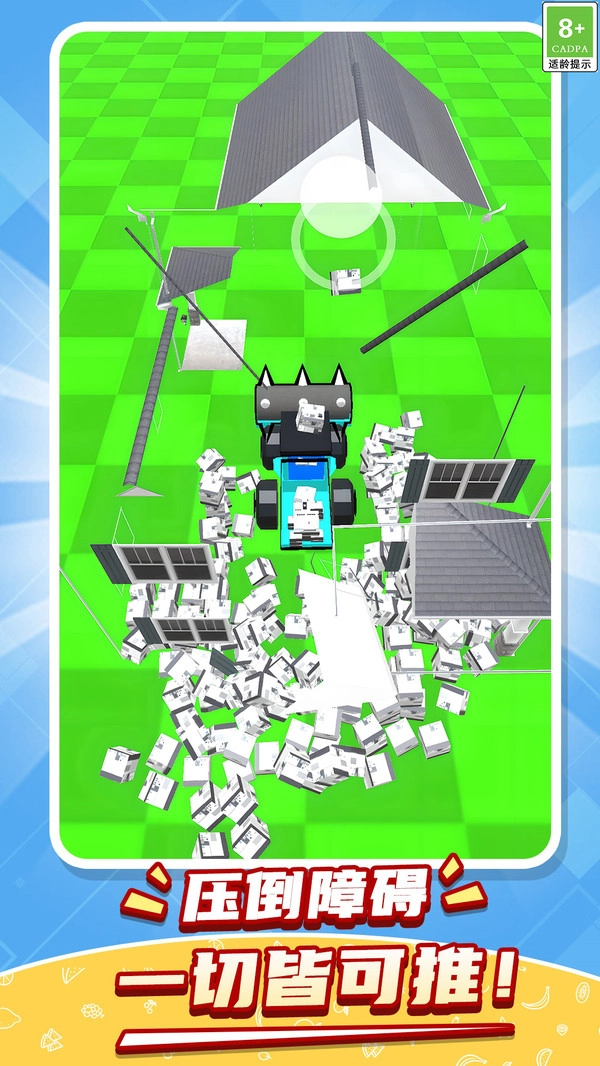 《开荒暴富》是一款集破坏、收集与模拟经营于一体的创意游戏。玩家将操控一台强力机械工程车,在废弃的绿地场景里自由驰骋,拆除破旧建筑、碾碎各类障碍物,收集散落各处的材料资源,最终打造出属于自己的梦想农场。从一片废墟到繁荣景象,从肆意破坏到精心创造,玩家将体验到独一无二的机械农耕生活。