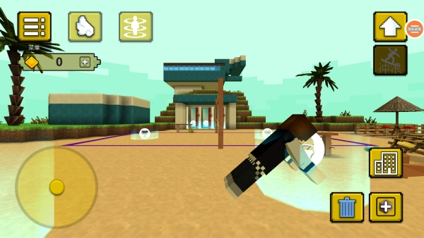用方块搭建房屋、城市之类的建筑,设计沙滩上的设施或者海上的建筑,塑造具有个人特色的天堂岛模样。