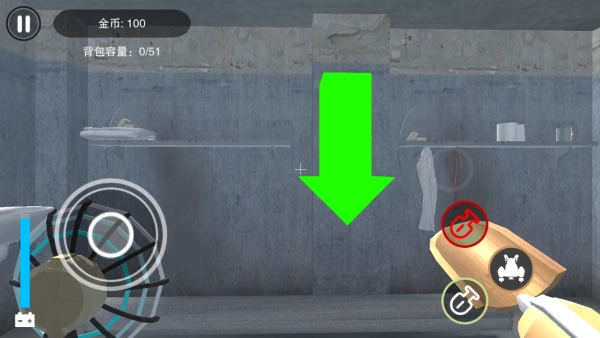屏幕左侧的虚拟摇杆负责控制角色的移动,右侧的按键则分别对应挖掘和趴伏这两个动作的操控。