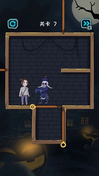 拿到道具后,就能把僵尸下方的棍子挪开,将他收服了。