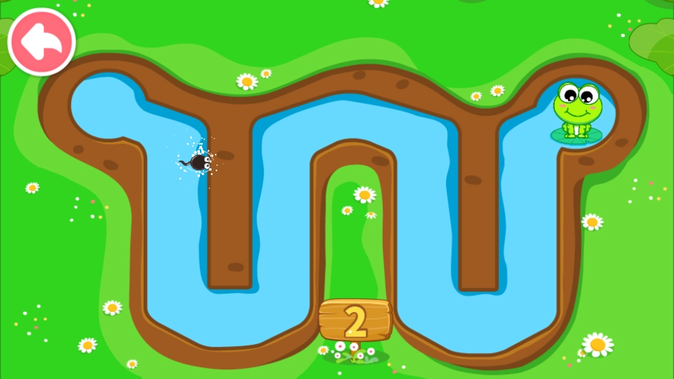 捉迷藏模式里设有不少关卡,孩子得帮着小蝌蚪寻找青蛙妈妈。