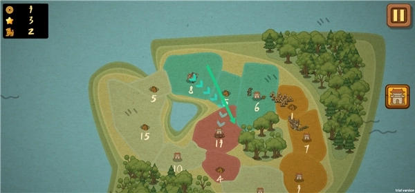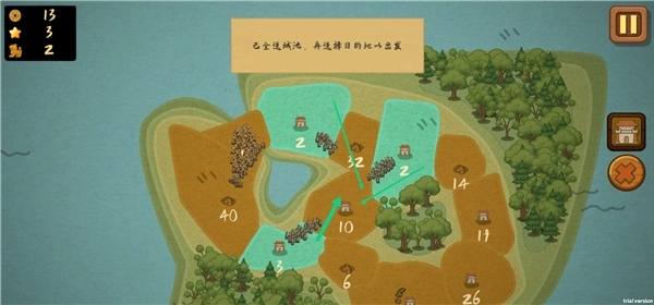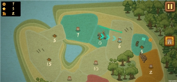 这是一款休闲策略类的小游戏,采用关卡制设计,操作方式十分简便。你只需点击己方对应的城池,然后把城池里的兵种派遣到其他城池,通过占领这些城池来推进游戏,当所有城池都被你占领时,你就获得了胜利。