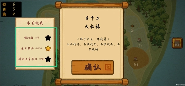 1、进入关卡后,能看到三个挑战任务,全部完成就能达成三星通关。