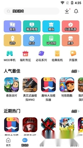 2、游戏库提供了丰富多样的游戏选择,涵盖联机、端游移植、抖音热游等不同板块,用户可根据喜好自行挑选。
