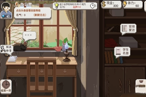 游戏开启时,学校的设施条件比较简陋,但只要你能持续培养出出色的学生,就能获取更多的补助经费,进而用这些资金来完善校园建设。