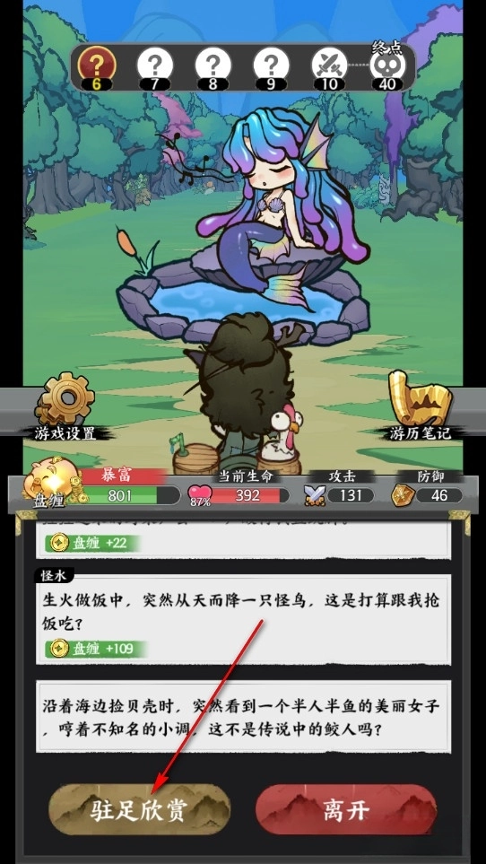遇到一个NPC点击【【驻足欣赏】或者【离开】