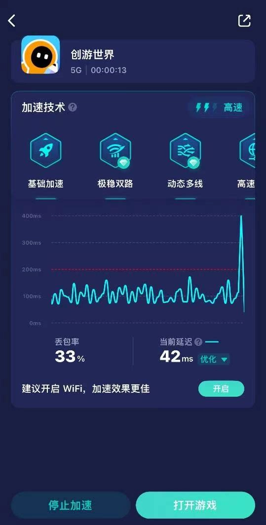 在优化工具中搜索《修狗地铁逃生》,点击优化后即可获得稳定的网络连接,畅玩创游世界修狗勾版地铁逃生。