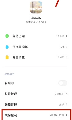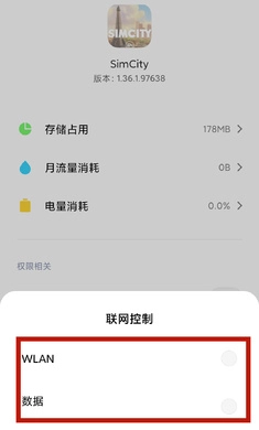 进入游戏的第二种方法:确保手机处于联网状态,在启动游戏前,先关闭该游戏的所有联网权限,之后再打开游戏就能进入了。(可参考下方图片,不同手机关闭应用联网权限的操作方式可能存在差异)
