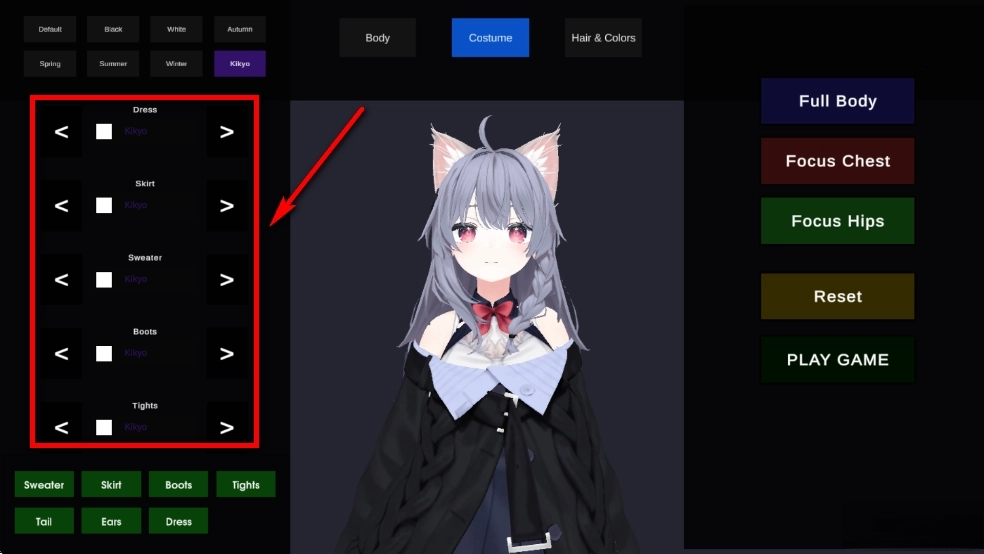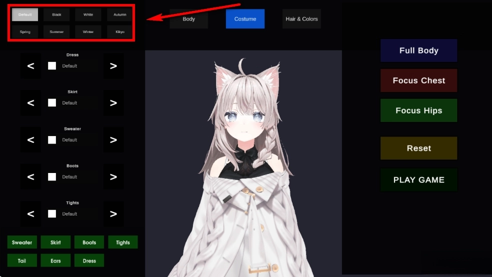 点击如图按钮可以自由切换各种不同风格的服装