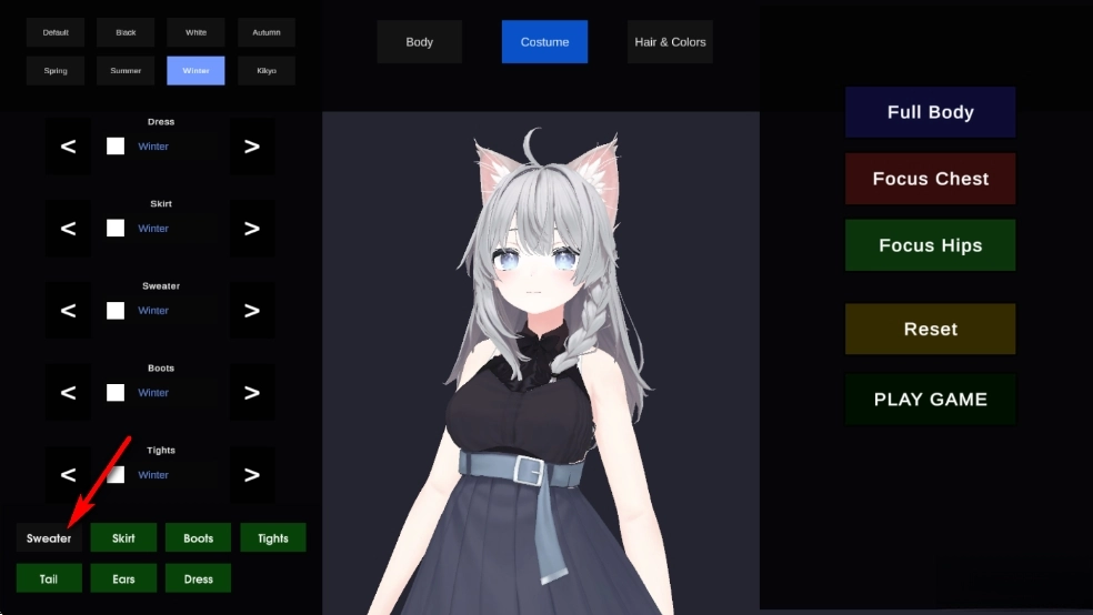 比如点击【Sweater】可以取消外套