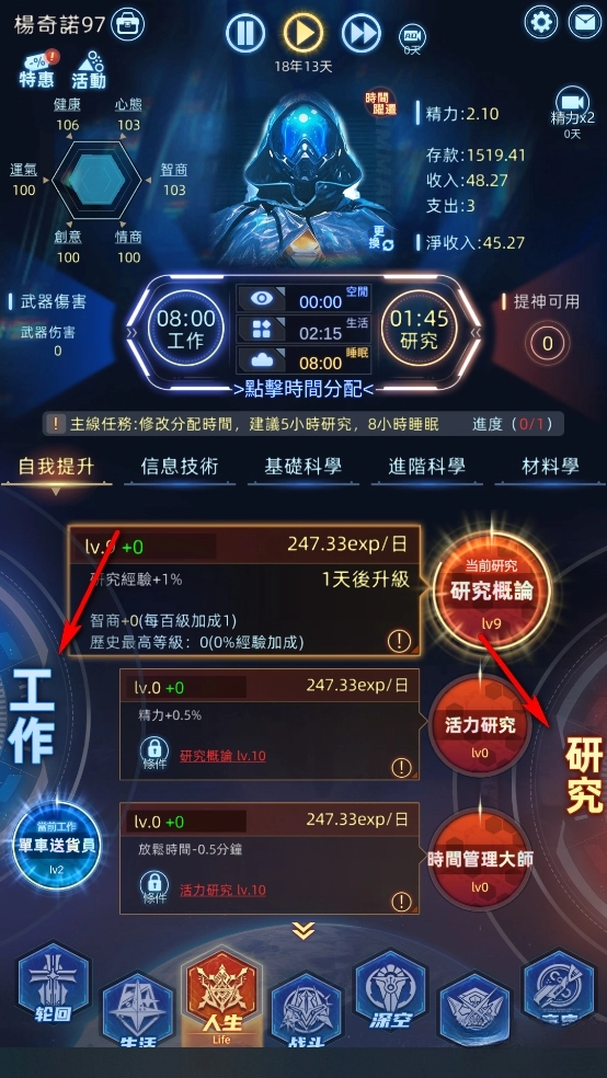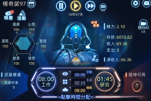 作为觉醒者,你将在一场纯文字模拟中,规划每一天的时间与选择——投身科研、专注工作、坚持锻炼、探索未知或是放松休息,每一个决定都将影响你的成长轨迹与文明的未来走向。