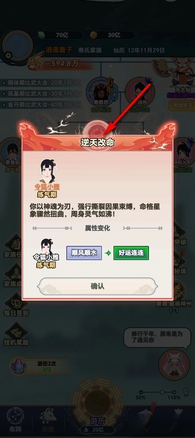 玩家将化身执掌家族的修仙者,在游戏里能体验到:缔结姻缘、孕育子嗣、建设家族、修炼突破境界,最终飞升踏入仙境!游戏过程中会随机触发各类事件供玩家抉择,恰当的选择能助力家族更快地发展壮大!这些随机事件设有多结局机制,提供了丰富的可能性,助力玩家打造出专属的家族传奇,依据自身的每一次选择,感受截然不同的人生轨迹。