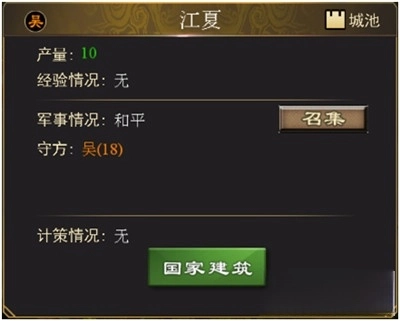 当国家建筑建造完成后,若该城池被另外两个国家攻占,那么国家建筑便会消失。