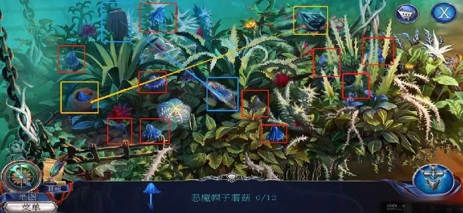 注:蓝色框蘑菇需要先用手套拿开玻璃,黄色框蘑菇需要先用石头打碎罐子
