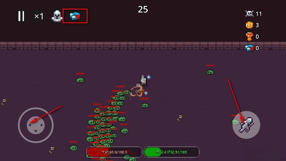 我们还得回到击败敌人的路线上去收集敌人掉落的金币与经验来强化自身,也能借助吸铁石道具吸附那些掉落的物品。