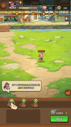 1、三个相同的单位能够合并成更高级的单位,点击单位即可完成合成操作