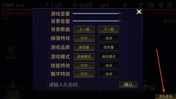 点击右下角的【清档重来】