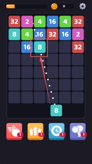 寻找合并的契机:在方格区域内移动数字方块,主动去发现相邻的相同数字方块,借助触碰操作来实现合并,从而产生更高等级的数字方块。