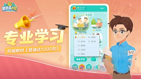 玩家需要使用标准普通话,通过获取金币来助力小镇建设,进而推动乡镇朝着现代化方向发展。这款软件里设有多种别具一格的学习模式可供体验,像生活、学习和工作等不同主题篇章,能帮助普通话基础较弱的玩家练习日常交流用语。在努力争取高分的过程中,玩家的普通话水平也会随之逐步提升。