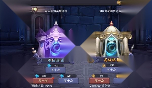 1、进入游戏内,玩家可先在酒馆内进行普通或高级英雄招募。