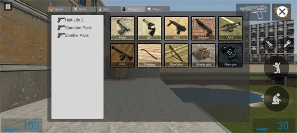 3、操作很简单,可以通过屏幕上方的武器按钮自由选择各种武器使用。
