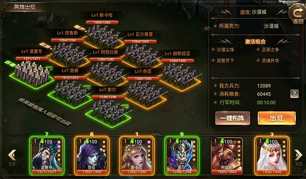 《王的崛起》作为一款小局制游戏,每局参与的玩家数量有明确限制,所以在每局开局阶段,玩家通常会优先对系统城池发起攻击。在挑选英雄时,建议尽量避免使用一键补兵功能,而是要学会根据实际情况合理搭配英雄组合。这是因为系统默认会按照英雄等级排序,把橙将排在队列最前面,若直接使用一键补兵,系统会优先派遣橙将出战,这样反而无法实现不同英雄之间的优势互补,也难以达到合理搭配的理想效果。