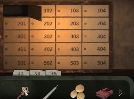 13、点击开启挎包中,应用【101室邮箱锁匙】开启101号柜,获取其中的【春联】。14、向左走,进到101室。