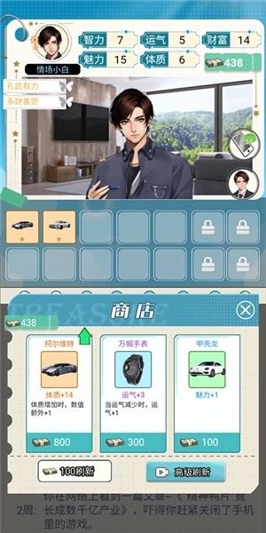4、每隔一段时间,商店会开放一次,购买里面的道具能够给自己带来属性提升。
