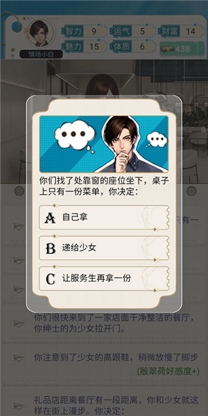 9、和角色聊天时,也是靠选择对话选项来推进流程的,这同样会对好感度产生影响。