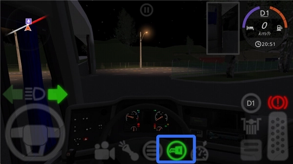 8、进入公路司机的驾驶室后,能看到不少按钮,左侧是方向盘,右侧是刹车和油门,中间则是负责开火以及控制公交常规功能的区域。