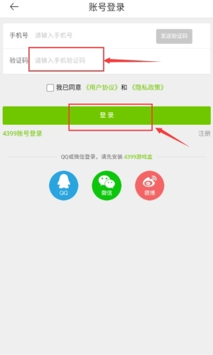2、输入手机号码,点击发送验证码获取。