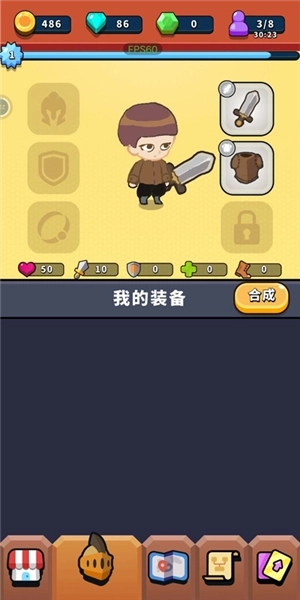 3、随着关卡不断推进,难度也会逐渐增加,因此玩家不仅能在战斗场景中对勇士进行升级,还可以为勇者配备武器来增强其战斗力。