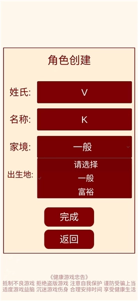 游戏开始时会让你进行出身选择,这一选择将对你的初始属性、拥有的金钱以及积累的人脉产生影响。
