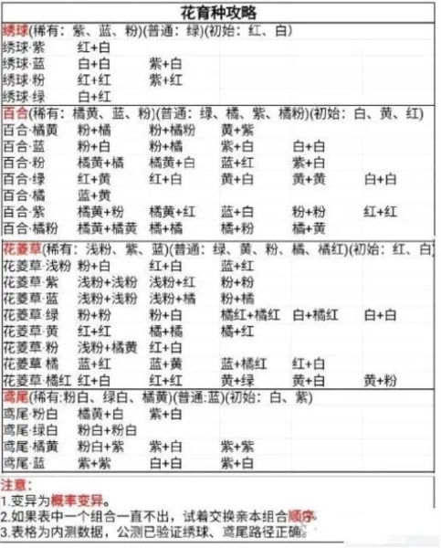 1、桃源深处有人家花圃育种规则如下:针对已收集到的成花开展育种操作,每次育种会消耗一根育种笔,成花不会被消耗。